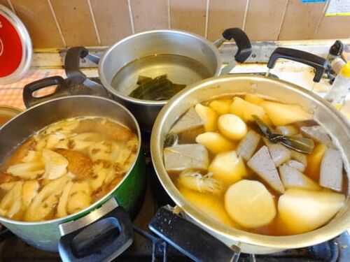 26日は 身内の人のお誕生パーティーでした 朝からおでんを煮込んで おだしを 濁らせたくなかったので 今回初めて 練り物(ちくわ 生揚げ ごぼう巻き等)は別鍋で煮ました 煮ている間にどんどんお汁が蒸発するので 昆布と花かつおで出した 出し汁をいっぱい作…